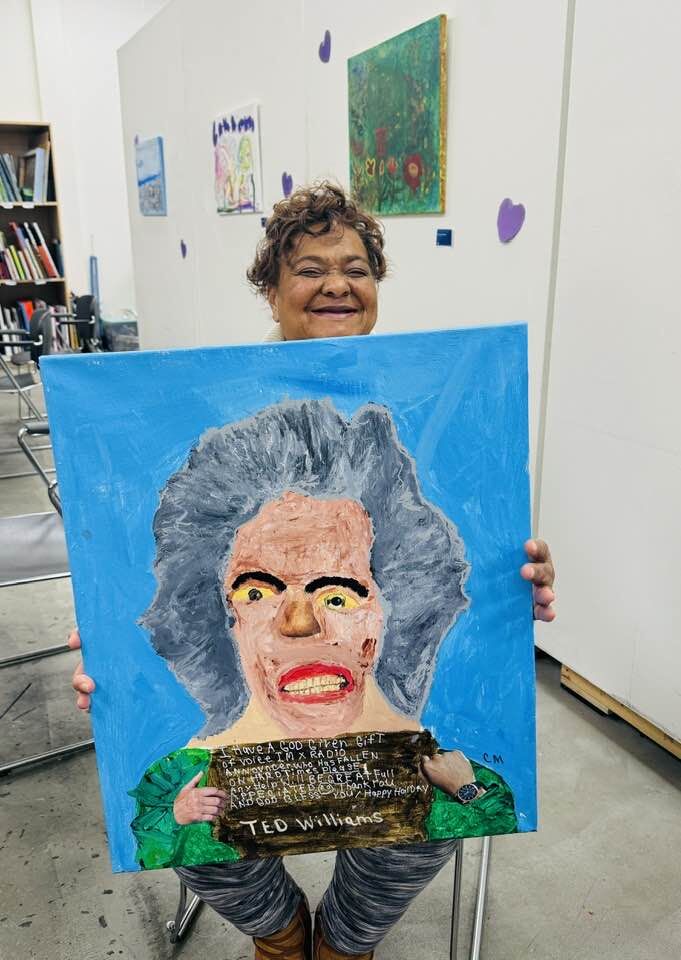 One of our talented artists, Charlotte, honors the “Golden Voice” of Columbus in her latest collage portrait of Ted Williams.